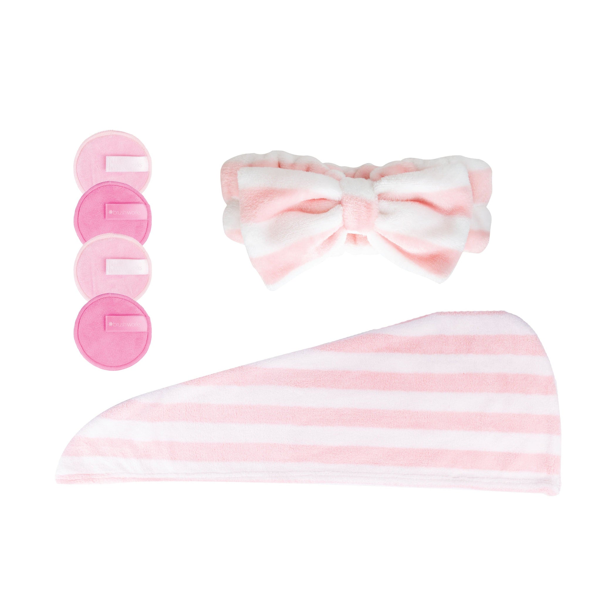 Fallegt gjafasett frá Brush Works sem inniheldur lúxus hárhandklæði, andlitshreinsiskífur og hárband. PETA samþykkt, Cruelty Free og Vegan.
