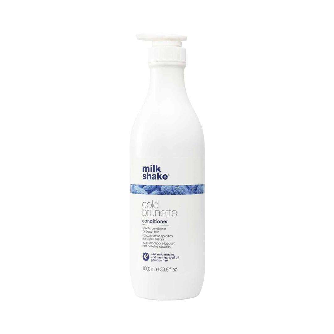 Milk Shake Cold Brunette er sérstaklega hannað fyrir brúnt hár. Bláu litarkorninn eyða óæskilegum appelsínugulum, rauðum, hlýjum tónum úr hárinu og gefur hárinu kaldan tón. Inniheldur ekki Paraben.
