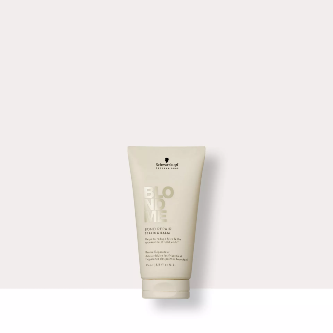 Blondme Bond Repair Sealing Balm er krem sem ekki þarf að skola úr hárinu, er þróað til að vernda og gera við ljóst hár. Háþróuð formúla með Bond Repair tækni sem endurbyggir hárið og gerir það mjúkt, glansandi og teygjanlegra. Kremið innsiglar, dregur sýnilega úr klofnum endum, temur frizz og veitir hitavörn allt að 230°C og UV vörn. Létt áferð sem mýkir hárið án þess að þyngja það. Fullkomið fyrir náttúrulegt, litað eða ljóst hár.