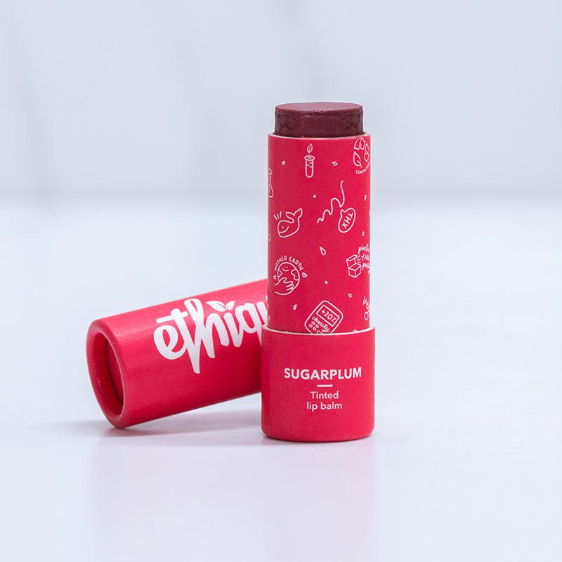 Sugarplum er umhverfisvænn varasalvi sem einnig er litaður og stútfullur af nærandi innihaldsefnum fyrir fallegar varir. Sugarplum er litaður varasalvi sem inniheldur lítið af piparmyntu ásamt fullt af kakósmjöri, laxer, jójóba og morgunfrúarolíu. Sugarplum er svo góður að þú munt aldrei gleyma hvar þú skildir hann eftir. Þessi ofurblanda mýkir og gefur vörunum þinum einstaklega mikinn raka svo þær haldast djúsí lengur. Salvinn kemur í 100% plastlausum umbúðum sem má setja í moltugerð einnig góður fyrir fólkið, hjá Ethique er lagt mikið kapp á að afla innihaldsefna sem framleidd eru með sjáflbærum hætti frá stöðum eins og Rwanda eða Samoa. Með því að versla beint við framleiðendur, bændur er hægt að auka gagnsæi sem tryggir öruggari innkomu fyrir þau og betri vinnuskilyrði.