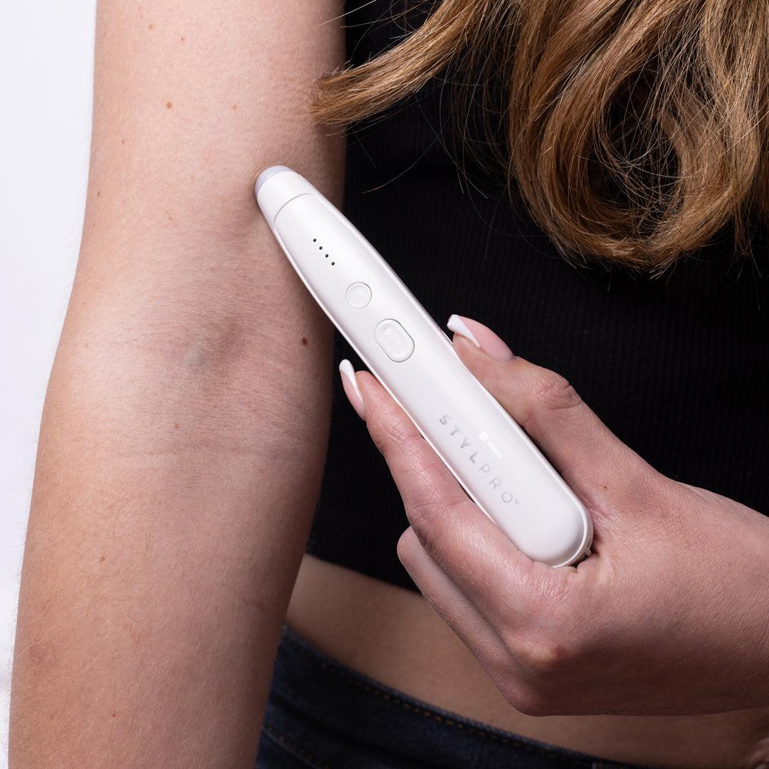 Stylpro Heated Insect Bite Pen hjálpar til við að draga úr kláða eftir skordýrabit. Rannsóknir sýna að með því að nota hita á bit þá getur það dregið úr histamín viðbragði sem eru helstu orsök kláða eftir skordýrabit. Niðurstöðurnar eru að penninn hjálpar þér að líða betur hraðar og draga úr kláðanum eftir bit. Leiðbeiningar tengdu USB-C hleðslusnúruna, sem fylgir með, við USB-tengi og hleðslugjafa. 4 LED ljós munu blikka hægt framan á tækinu meðan það er í hleðslu. Þegar tækið er fullhlaðið verða öll 4 LED ljósin stöðug.