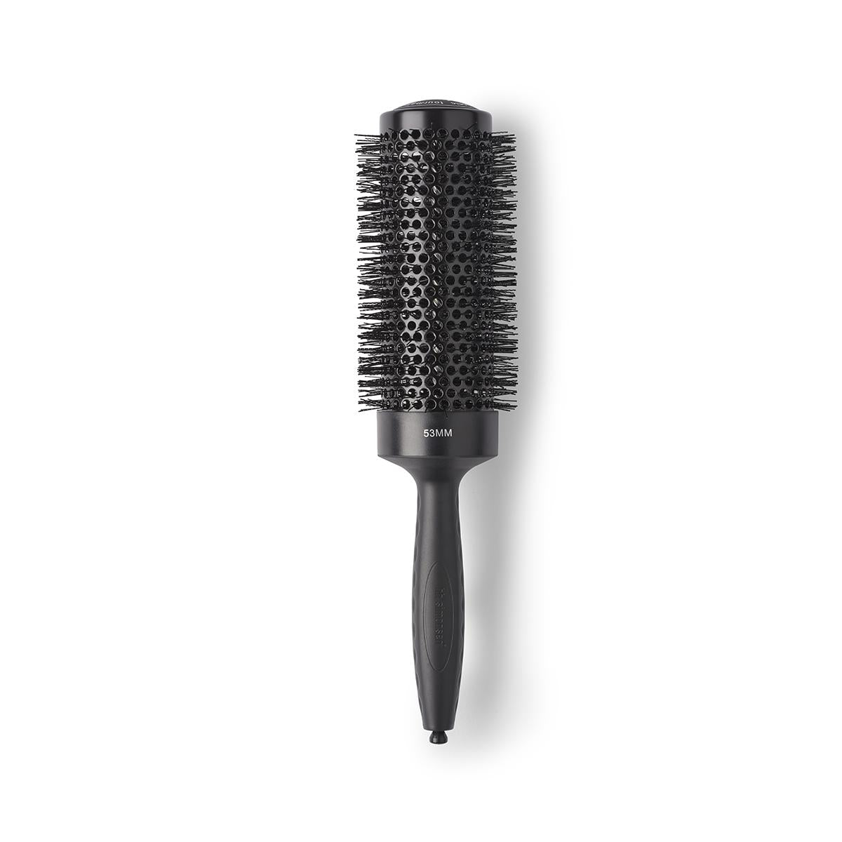 Ný og lengri útfærsla af Heat Brush rúlluburstanum frá HH Simonsen. Við hönnun á burstanum var lögð áhersla á hafa loftflæðið í gegn um burstann eins mikið og mögulegt væri sem gefur enn meiri lyftingu og styttir blásturstímann. Þegar hitastig burstans er komið yfir 60°C breytist liturinn burstahausnum úr svörtum í gráan til að sýna að yfirborð burstans sé virkt til að móta hárið þitt. Burstinn er sérstaklega langur eða 15cm. Handfangið er með þægilegu gripi sem er húðað með gúmmíi. Í endanum á handfanginu er pinni sem er hægt að draga út og nýta þegar verið er að skipta hárinu upp. Keramikhúðunin heldur hita sérstaklega vel, rennur vel í gegn um hárið sem gerir hann einstaklega auðveldan að vinna með og styttir þurrkunartímann.
