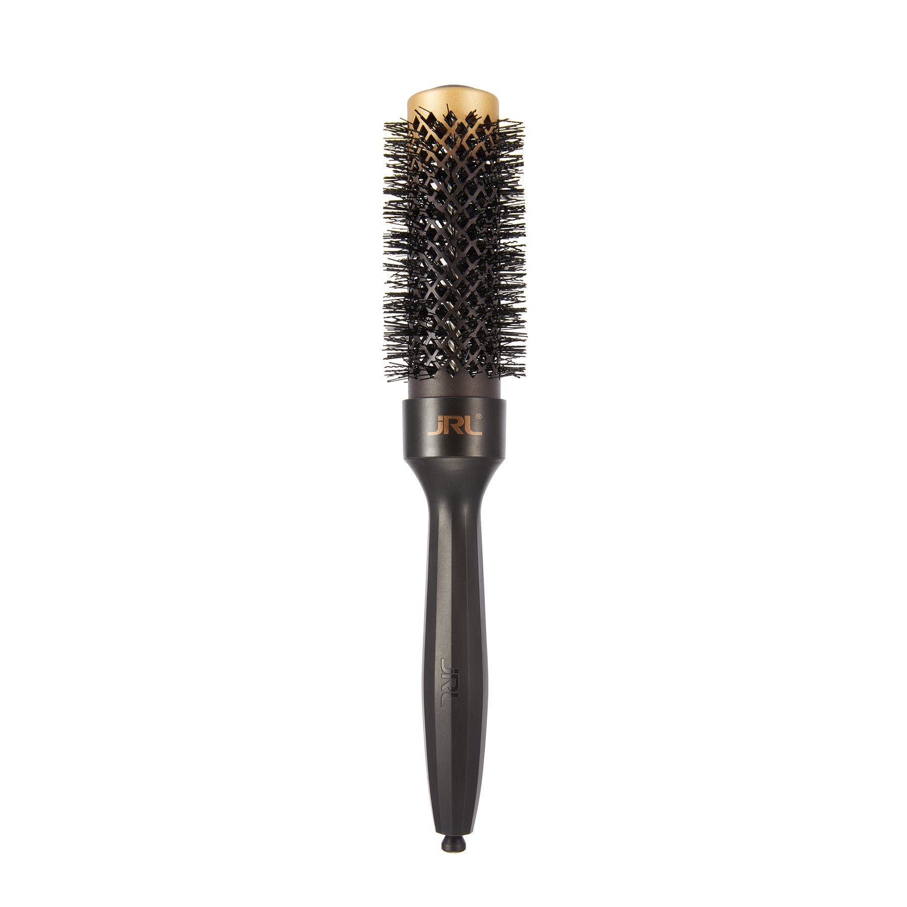 Faglegur hringbursti frá JRL. IGC Jónísk grafínbætt keramik hausinn tryggir jafna hitaleið, aukið grip, spennu, rúmmál og lögun. Litur hausins breytist úr svörtu í gylltan lit með hita. Fæst í nokkrum stærðum.