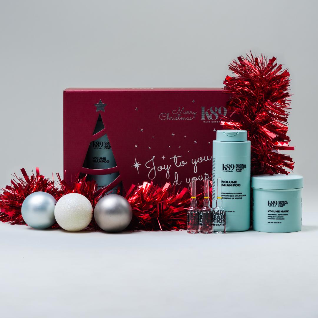 K89 Sweet Care Volume, fallegt gjafasett í jólaboxi. Gefðu hárinu lyftingu og líf með Volume jólapakkanum frá Sweet Care K89....