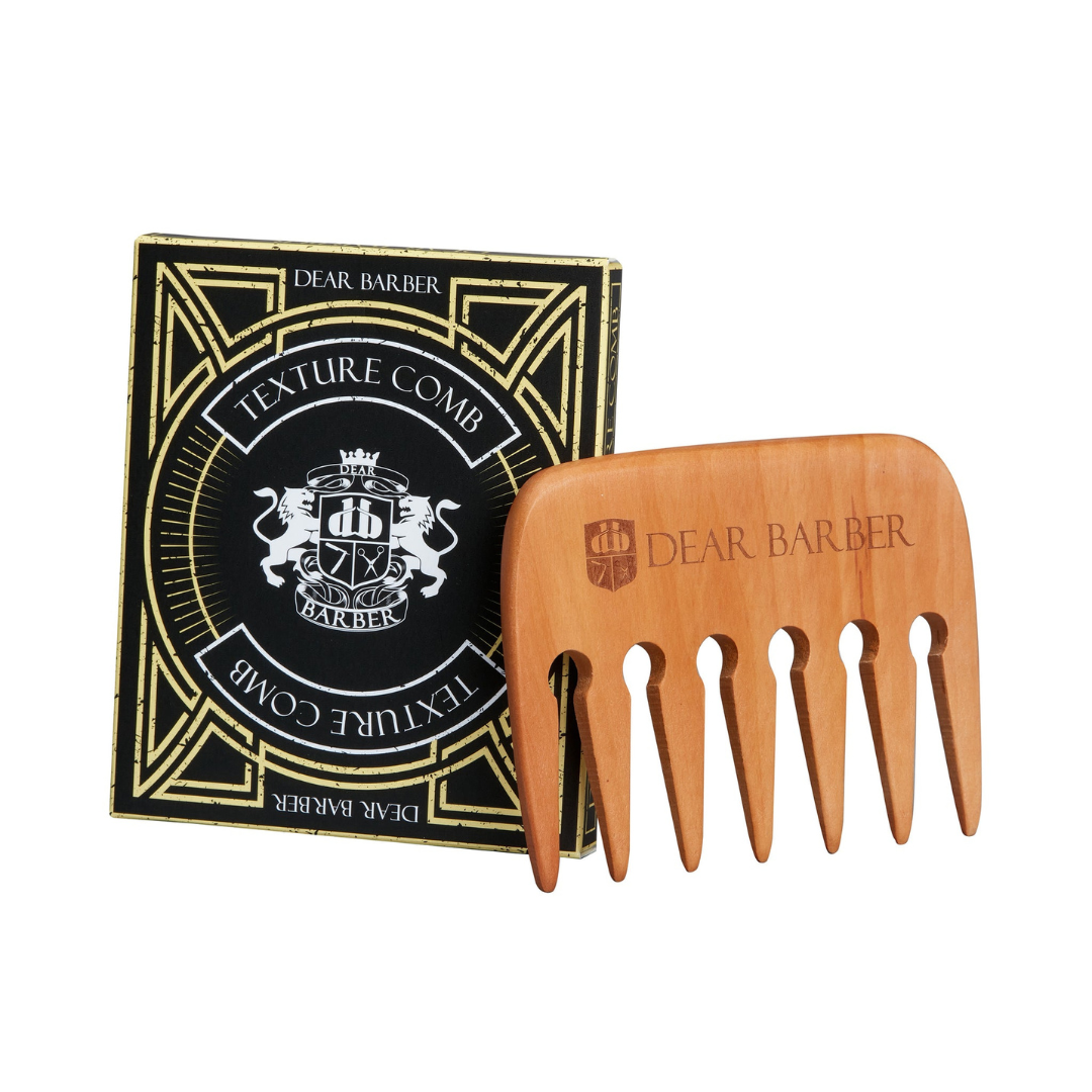 Dear Barber Texture fagmannleg greiða úr umhverfisvænum peruvið og skilgreinir áferðarríkt hár á auðveldan hátt og hjálpar til við að stjórna krullum. Sérþróaðar, breiðar og sléttar tennur renna mjúklega í gegnum hárið og skapa fullkominn stíl.