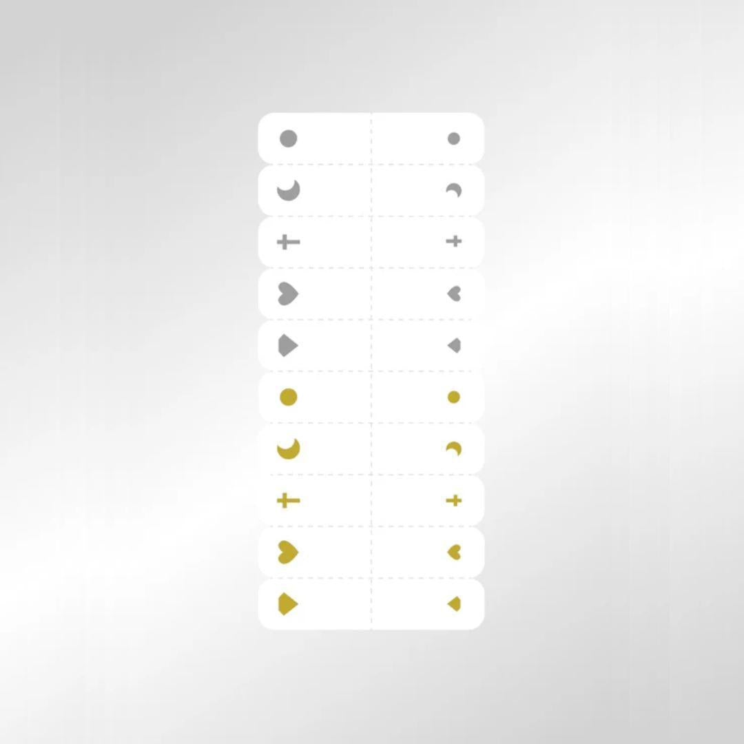 Notkun: Rífðu hönnunina sem þig langar í af blaðinu og fjarlægðu plastfilmuna. Dýfðu því í vatni í 1 sekúndu svo pappírinn sé aðeins rakur. Þurrkaðu tennurnar vel. Settu hönnunina varlega á tönnina og haltu því svo á sínum stað með fingrinum þínum í 10 sekúndur og passaðu að renna ekki eða hreyfa fingurinn. Leyfið að þorna í 10 sekúndur áður en munninum er lokað. Til að fjarlægja er best að bursta það burt með tannbursta, skola og fjarlægja.