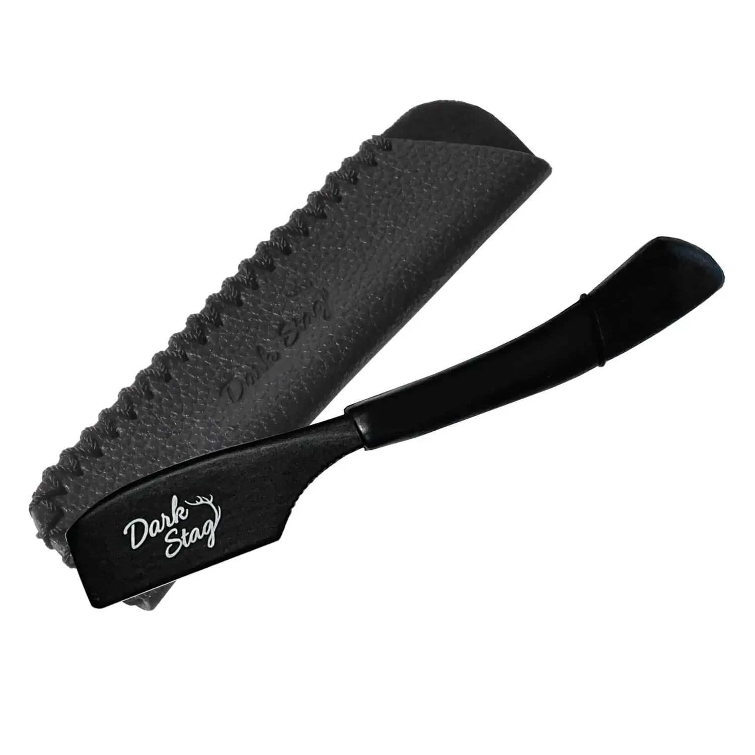 Dark Stag Kamisori er hefðbundin japönsk rakvélahönnun sem gerir þennan rakhníf fullkominn fyrir mótun, stíl og rakstur, hvort sem það er skegg eða yfirvaraskegg. Það tekur einungis tvær sekúndur að skipta um blað, þú klemmir einfaldlega hausinn til að losa notaða blaðið og smellir nýja í staðinn. Ásamt gormfestu one touch blaðhaldarbúnaðinum er hægt að opna Kamisori auðveldlega til að þrífa og sótthreinsa.