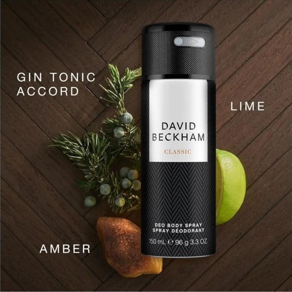 Lyftu upp ævintýraandanum í þér og vertu ferskur og ilmaðu vel á hverjum degi með David Beckham Classic Deodorant. Mildur ilmur fyrir herra úr ilmríkum, viðarkenndum ilmefnum. Toppnóturnar eru gin, límóna og galbanum. Hjartanótur eru mynta, kýprus og múskat. Grunnnóturnar eru Amber, Texas sedrusviður og vetiver.