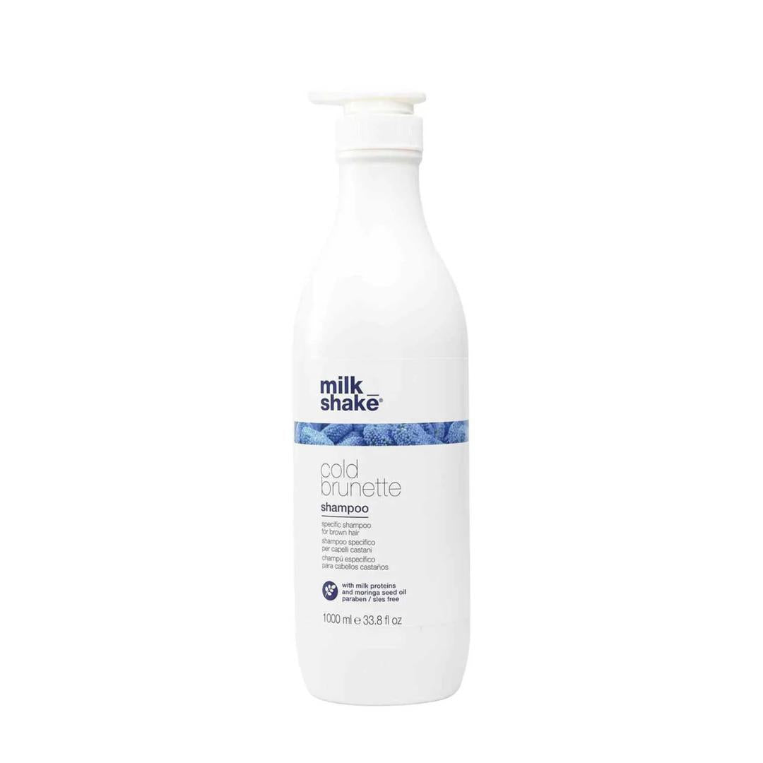Milk Shake Cold Brunette er sjampó sem er sérstaklega hannað fyrir brúnt hár. Bláu litarkorninn eyða óæskilegum appelsínugulum, rauðum, hlýjum tónum úr hárinu og gefur hárinu kaldan tón. Inniheldur ekki Paraben.