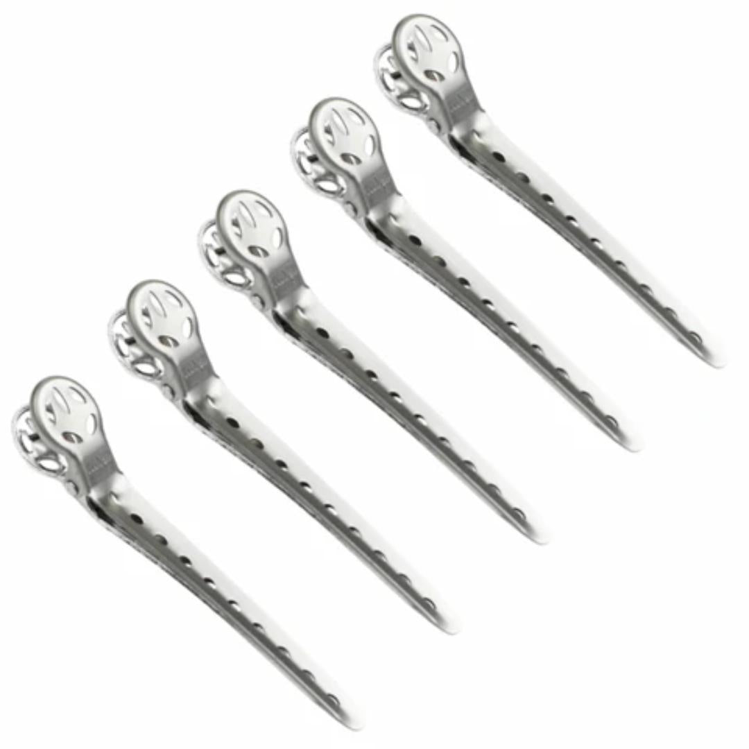 Sterkar og vandaðar hárspennur eru gerðar til að fullnægja öllum þörfum hársins. Stílistar í New York, Beverly Hills og London kalla þetta „bestu klippur í heimi“. Sérstaklega hannaður í fingurlengd og höfuðformi. Búið til fyrir fagfólk á snyrtistofum. 5 stykki í pakka.
